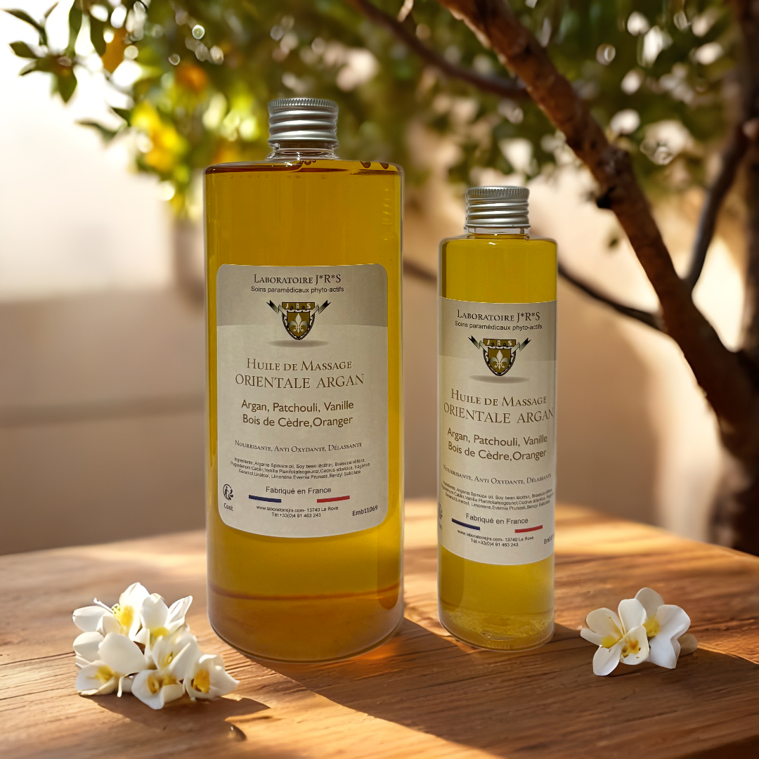Argan, Lécithine de soja, Santal, Patchouli, Bois de Cèdre.